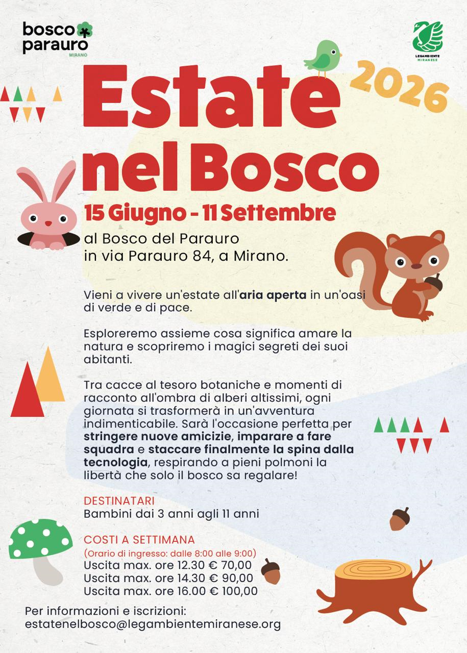 Riprendono quest'estate i centri estivi presso il Bosco del Parauro organizzati da Legambiente Miranese